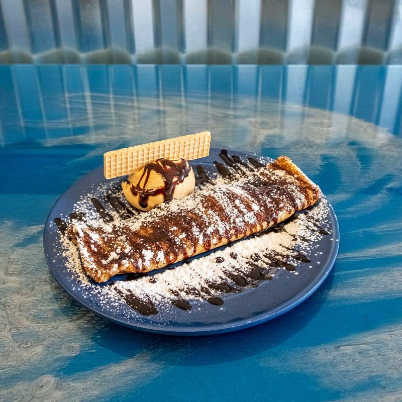 Panqueques con Dulce de Leche y Una Bocha de Helado